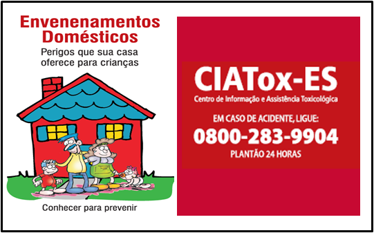 O CIATox-ES reforça a importância de reconhecer os produtos tóxicos em sua casa para saber como prevenir os acidentes. A figura mostra os produtos tóxicos mais comuns por ambientes da casa.